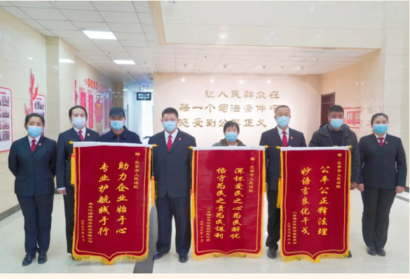 10月8日,假日后的第一天,二井镇政府协同自平村委会、牧场厂长与36户村民的代表一道将三面锦旗送到了北安法院,乡村组织与矛盾双方共同的谢意给了这次“金秋护农保丰年”系列审判活动打了最高分。