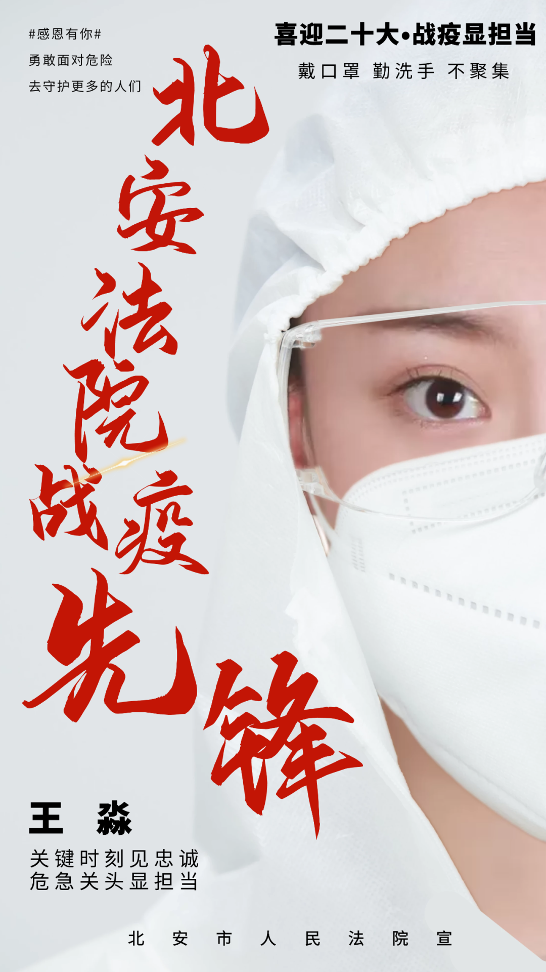 关键时刻见忠诚,危急关头显担当。面对突如其来的新冠肺炎疫情考验,北安法院党组织和广大党员干部挺身在前,在疫情防控一线亮身份、做表率、见行动。院党组迅速响应,组建党员突击队、党员先锋队、临时党支部,党员干警转变角色,积极配合北安市疫情防控指挥部,协助做好隔离转运和终端消杀等工作,全力构筑疫情防控红色堡垒,勇当疫情防控红色尖兵,让党旗在疫情防控一线高高飘扬,以优异的成绩向党的二十大献礼。今天的“喜迎二十大 战疫显担当”专栏,让我们走近隔离转运组王淼。