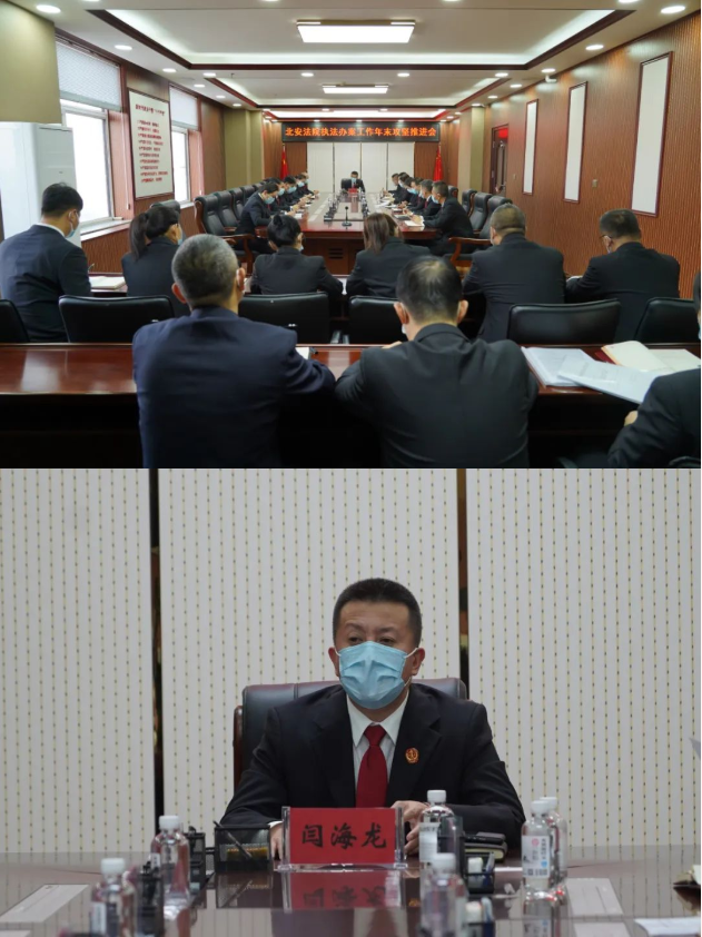 11月14日下午,北安法院召开执法办案工作年末攻坚会,贯彻落实全市法院深入学习贯彻党的二十大精神暨年底冲刺动员会议精神,对执法办案工作进行攻坚冲刺阶段的安排部署。党组书记、院长闫海龙主持,班子成员、专职审委、各部门正职参加会议。