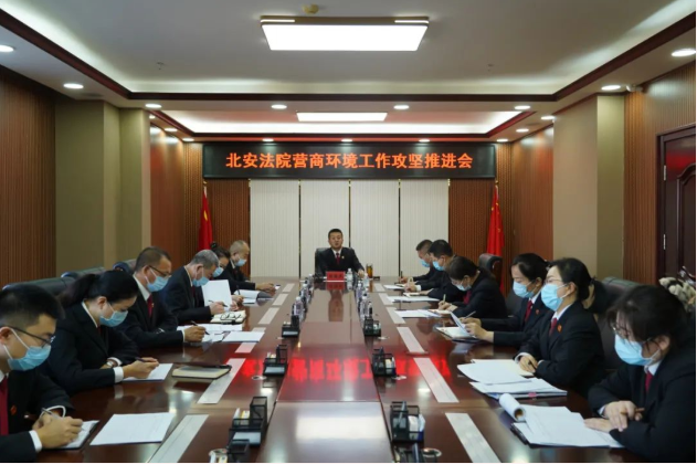 为贯彻落实朱卫国院长讲话精神,扎实提升优化营商环境各项工作质效,11月18日,北安法院召开营商环境工作攻坚推进会,党组书记、院长闫海龙主持会议,优化营商环境执行合同、办理破产、保护中小投资者工作专班全体成员参加会议。