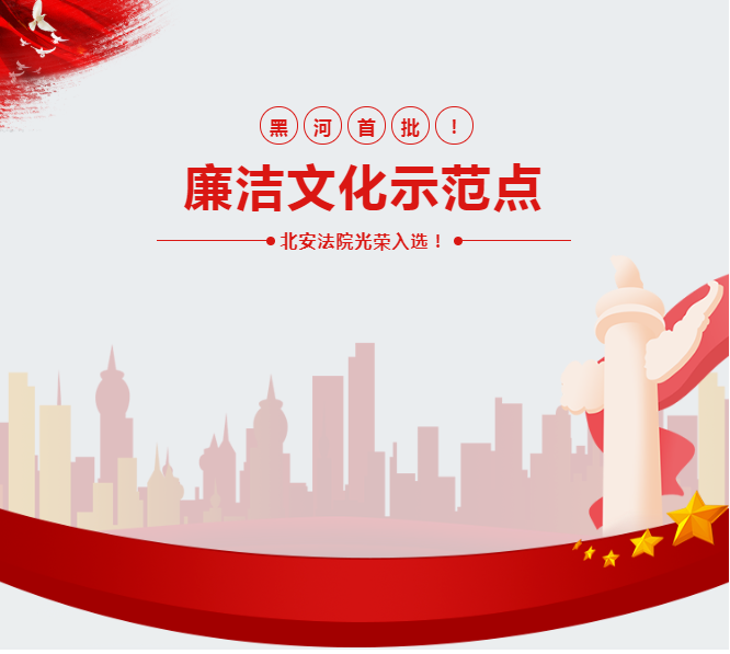 近日,黑河市命名首批廉洁文化教育阵地48个,其中廉洁文化教育基地23个,廉洁文化示范点21个,廉洁文化景观4个,北安法院光荣入选“廉洁文化示范点”。