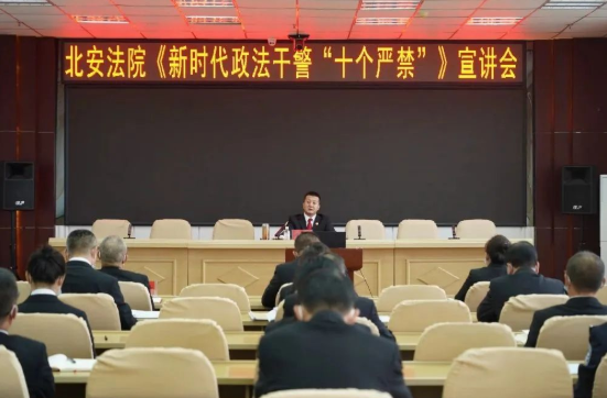 打造廉政课堂:院领导为全院干警讲廉政党课、宣讲“十个严禁”;邀请市委专题教育廉政宣讲团讲师到北安法院进行廉政宣讲;组织干警参加全市廉政教育讲座,让“廉政课”成为全院干警的终身必修课。