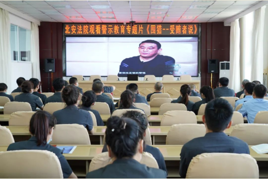 组织庭审观摩:组织本院干警、机关干部观摩职务犯罪庭审,以案为鉴,警钟长鸣,通过让旁听者身临其境的方式,把案件审判打造成法治公开课,把职务犯罪庭审变成反腐倡廉重要课堂。