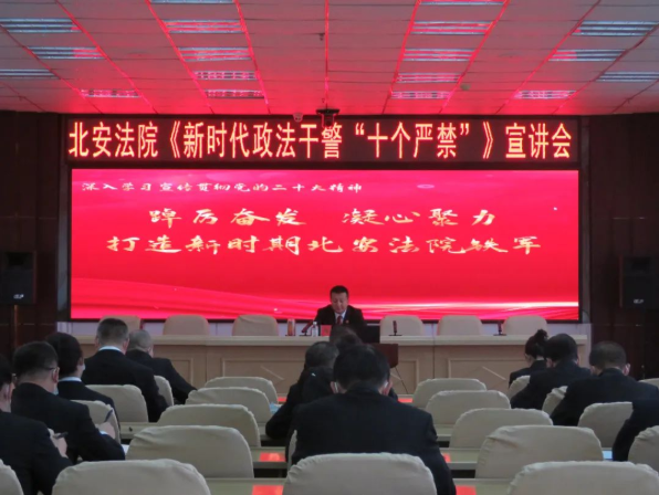一是坚决学习贯彻落实好党的二十大关于加强党风廉政建房的相关要求,深入学习贯彻好新时期政法干警“十个严禁”。