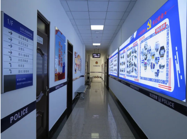 司法警察大队建设警营文化长廊,分为警务工作展示板、警员风采展示板、警旗、誓词、实战化训练剪影、《人民法院司法警察依法履行职权的规定》、突发事件处置流程等多种形式的内容。通过建设司法警察文化长廊,彰显政治建警、文化强警、科技兴警、从严治警、从优待警的良好氛围,着力提升司法警察职业认可度,激发司法警察干事创业热情,有利于打造一支对党忠诚、服务人民、执法公正、纪律严明的司法警察队伍。