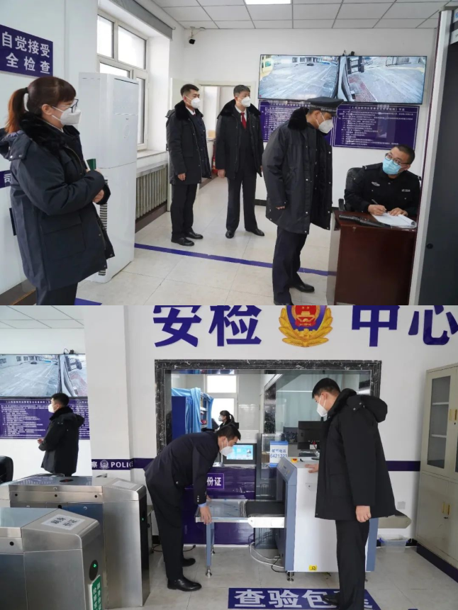 检查组首先对安检中心的安检仪、安检门机械性能进行检查,仔细查看了应急处突的防暴钢叉、警棍、盾牌等警用防护设备,并叮嘱安检工作人员要严格按照安检规定开展工作,仔细排查来院人员是否携带违禁物品,确保来院人员及全院干警人身安全。