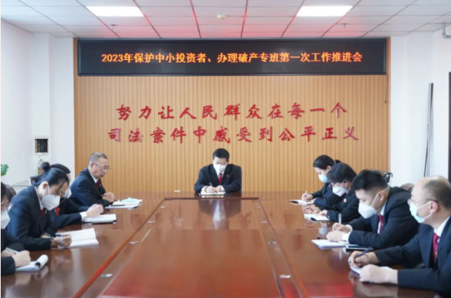 王春胜对办理破产专班、保护中小投资者专班新的一年工作进行动员部署,他强调,一是要深入学习贯彻党的二十大精神,以高度的政治自觉和政治责任,将中央、省委、市委和上级法院决策部署落到实处。高度重视办理破产、保护中小投资者工作,积极对标一流目标,跳起摸高,全力营造法治化营商环境。