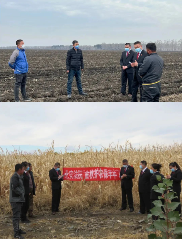 抓住春耕这一关键节点开展“惠农暖春”活动,以6个人民法庭和一个巡回审判团队为支点,精准对接16个村委会等乡村社会基层治理力量,23名法官入乡村、进社区、融网格,及时发现、化解矛盾,确保春耕生产和粮食安全。充分发挥人民法庭在矛盾纠纷“源头预防、前端化解、关口把控”上的职能作用,依托司法大数据对以往案件进行统计分析,排查出备春耕生产中存在的矛盾风险隐患点21个。全面启动“司法救助工程”,为确有困难的农民及时办理诉讼费缓、减、免手续。深入村屯开展法律宣传,就农民可能遇到的假劣种子农药化肥、无人机喷洒农药及土地承包等可能引发纠纷的问题,为农民群众提供专门法律服务,确保农民买上“放心种”,用上“放心肥”。在秋收节点全面启动“金秋护农保丰年”系列巡回审判活动,六个基层法庭全面开启巡回审判模式,将庭审、调解搬到田间地头,以行走的人民法官打造移动的人民法庭,切实保证农民矛盾纠纷不出村,诉讼、农忙“两不误”。通过深入田间地头、到村委会等与群众密切联系的地方开展巡回审判10站,化解涉诉涉访案件53起,走访涉农企业、粮站8家,开展法治宣传活动3场次,收到锦旗3面,将司法服务与基层治理深度融合,促进了矛盾纠纷源头化解、就地解决,用实际行动为辖区的秋收生产提供了全方位的司法保障,经验做法在人民法院报等多家媒体转载。服务疫情防控形势需要,抽调122人参加疫情防控工作,累计转运隔离人员7435人次,执行消杀任务97次,消杀阳性病例房间216间,场所面积约17万平方米,2022年12月,北安法院车明哲、王傲辉、冯浩然、朱丹、谷世国、崔文茂、王鑫、孔令军被中共北安市委组织部授予“最勇消毒战士”称号。