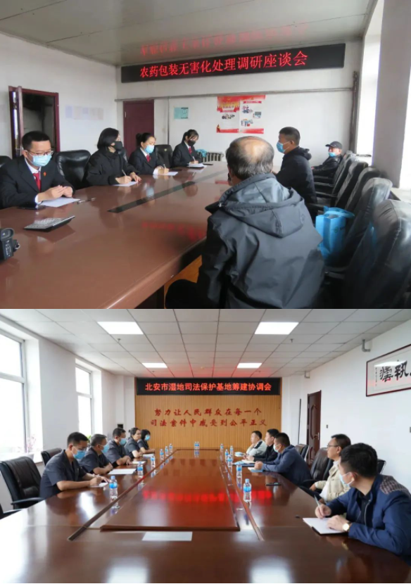近年来,北安法院深入贯彻习近平法治思想、生态文明思想,充分发挥环境资源审判职能,依法审理各类环境资源案件,不断提升环境资源审判工作水平。全面推行环境资源类案件民事、刑事、行政“三合一”集中审判模式, 建立环境资源审判团队,构建环境资源审判的专门化体系;打造“3+1+2”工作模式,在全面推行环境资源案件的“三合一”集中审判模式的基础上加强行政非诉执行,作为三合一审判的有力保障,以向前延伸监督预防职能,向后延伸救济修复职能的两个延伸来全面落实环境资源审判“预防为主,注重修复”的理念;建立多部门联动机制。通过联席会、座谈会等方式,不断加强与公安、检察、环境资源行政执法部门之间的沟通联络,建立环境资源司法与环境资源执法的有效衔接机制,发挥环境资源审判辐射功能,积极推动构建环境资源司法保护共建共治机制,凝聚生态环境保护合力;参与社会管理综合治理。注意查找行政执法中存在的短板和问题,及时向政府及相关行政执法部门提出意见和建议,为环境资源保护和推动生态环境绿色发展提供有力的司法服务和司法保障;充分运用传统媒体及微信、微博等新媒体方式以及深入社区、街道、中小学校开展多种形式环保法律宣传活动,增强群众环境资源保护意识及合法维权意识,引导公众自觉履行环境保护法律义务。开展农药包装废弃物污染环境专题调研,提出“村收集乡转运市处理”的建议,形成《司法专项报告》,被市政府采纳并转化立项,在全市范围内推行,促进了生态环境安全和农业绿色发展。