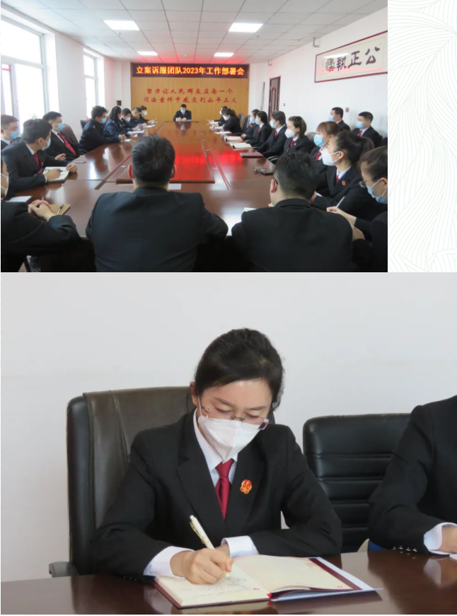 1月11日,立案诉服团队召开2023年第一次工作部署会。党组成员、副院长王春胜主持会议,立案诉服团队全体干警参会。