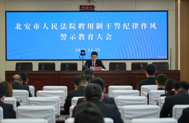 为进一步筑牢聘用制人员队伍思想防线,提升职业素养与履职能力,12月25日,北安法院督察室针对近期发生的违纪案例,组织召开全体聘用制干警纪律作风警示教育大会。会议以“强化规矩意识、压实责任担当”为核心,通过案例剖析、纪律重申、思想动员,为全体聘用制干警敲响廉洁履职“警示钟”,为规范司法服务注入“强心剂”。