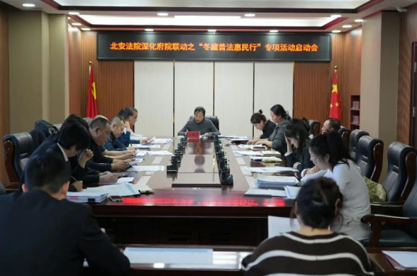 为深入践行习近平法治思想,全面落实“谁执法谁普法”责任制,持续深化府院联动机制效能,近日,北安法院召开府院联动之“冬藏普法惠民行”专项活动启动会。会议立足辖区冬季生产生活特点,整合司法与行政资源,部署覆盖十大重点领域、为期四十五天的系列普法惠民专项活动,以法治力量护航冬季民生保障与社会和谐,为推进法治北安建设注入冬日暖流。
