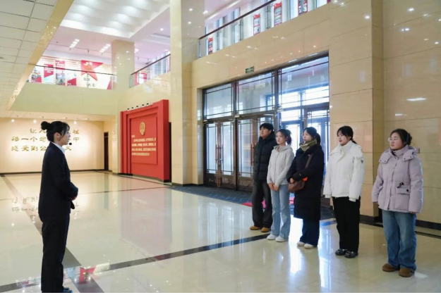 寒假伊始,随着“返家乡”社会实践活动的展开,北安市人民法院面向实习生举办了“公众开放日”活动。5名来自不同高校的返乡大学生走进法院,在讲解员的带领下,依次参观了诉讼服务中心、审判法庭、心灵驿站等场所,近距离感受了法院的日常工作流程与司法氛围。