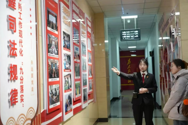 参观期间,讲解员系统介绍了北安法院在审判现代化、多元解纷、便民服务等方面的创新举措,并结合近年荣誉成果与文化建设实例,帮助同学们建立起对法院工作的直观认识。