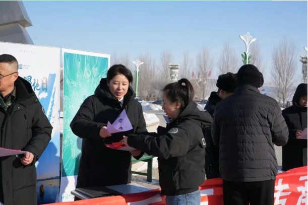 “非法占用湿地从事养殖、施工,不仅要恢复原状,还可能面临罚款甚至刑事责任!”活动现场,北安法院环资审判团队与林草局、检察院、交通局工作人员组成联合普法组,在通北镇湿地管护区周边休闲广场设置宣传站点。法院干警结合“北法安澜生态”品牌中“法治环保”理念,用通俗语言解读湿地保护法律边界,重点回应群众关心的“湿地周边生产经营合规性”“生态破坏赔偿”等问题。