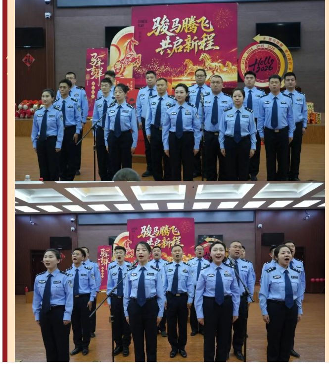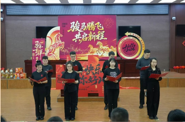 联欢会上,党组书记、院长闫海龙携全体党组成员登台致辞,向全体干警致以诚挚的新年问候与美好祝福,寄语大家新岁赓续法治初心、勇担使命再谱新篇。随后主持人热情开场,宣布小年主题文艺展演正式启幕;