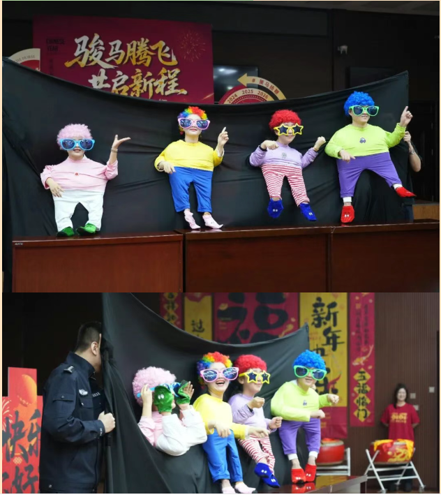 展演过程中,还穿插了“马上接福”猜歌词、“策马奔腾”充气小马赛跑等趣味小游戏,干警们踊跃参与、默契配合,在欢声笑语中释放工作压力,增进同事间的深厚情谊。