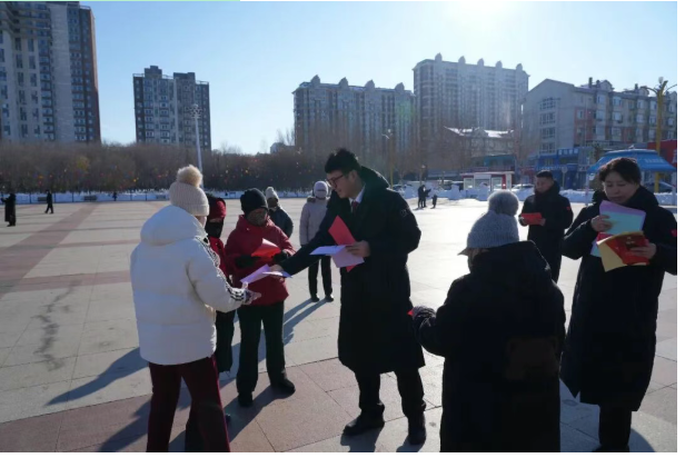 在北安冰雪经济蓬勃发展的新春时节,北安法院环境资源审判团队深耕“法治环保,绿色守望,健康共享,安澜生态”的“北法安澜生态”品牌,将司法服务延伸至公园活动区与小吃商铺,聚焦环境卫生与野生动物司法保护,开展了春节前普法宣传活动。