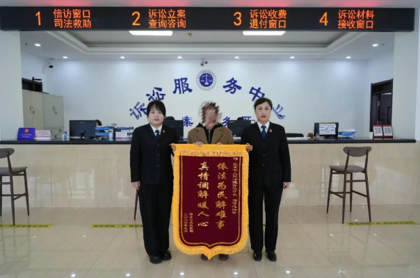 近日,北安法院诉讼服务中心通过先行调解、当日立案当日化解模式,成功调处一起公积金继承家事纠纷,让原本心生隔阂、关系紧张的亲属冰释前嫌、重归于好,以司法温度守护家庭和睦,获当事人赠送锦旗致谢。